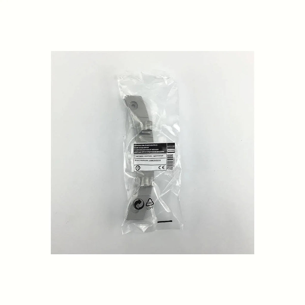 Bisagra de puerta adaptable para secadoras ELECTROLUX y otras marcas. Este recambio de alta calidad es compatible con una amplia gama de modelos de secadoras de marcas como ELECTROLUX, AEG, REX, ZANUSSI, BEKO, PHILCO, HUSQVARNA, KENMORE, FRIGIDAIRE, FAURE, JOHN LEWIS. Asegura un cierre perfecto y prolonga la vida útil de su electrodoméstico. Ideal para reemplazar bisagras dañadas o desgastadas.