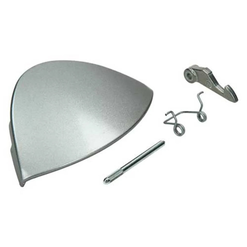 Complete closure for washing machine door Indesit and Ariston. This handle assembly is responsible for opening the door and closing the door of the appliance. If your appliance does not start, the closing mechanism may be faulty and the door switch may not operate. In some cases the problem not only lies in this part, but it is also advisable to change the door switch of the washing machine. Handle made of plastic, metallic color.