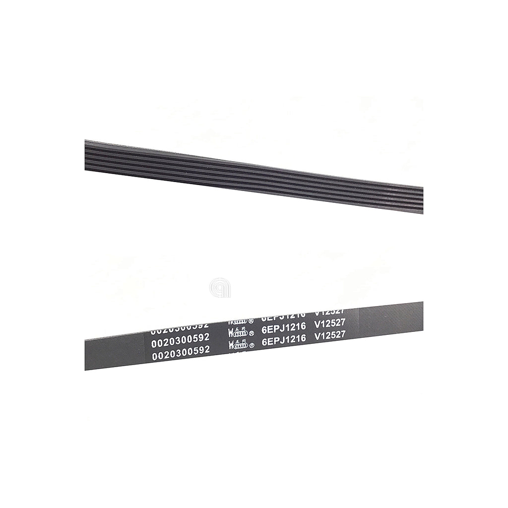 La correa Poly-V J6 1216 es un repuesto original diseñado para lavadoras de las marcas Haier, Candy y Hoover. Esta correa es fundamental para el correcto funcionamiento del tambor, ya que transmite la fuerza desde el motor para que la lavadora realice el lavado y centrifugado.