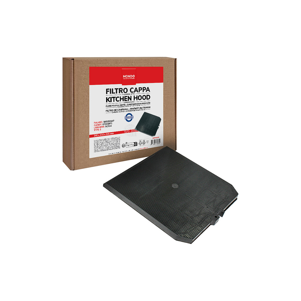 Este filtro de carbón rectangular Tipo 3 es un recambio adaptable de alta calidad, compatible con campanas extractoras de las marcas CANDY, FALMEC y LIEBHERR. Diseñado para purificar el aire y eliminar olores, es una solución eficiente para mantener un ambiente fresco en su cocina. Ideal para reemplazar filtros desgastados y asegurar el óptimo funcionamiento de su electrodoméstico. Su instalación es sencilla y contribuye a la recirculación del aire.