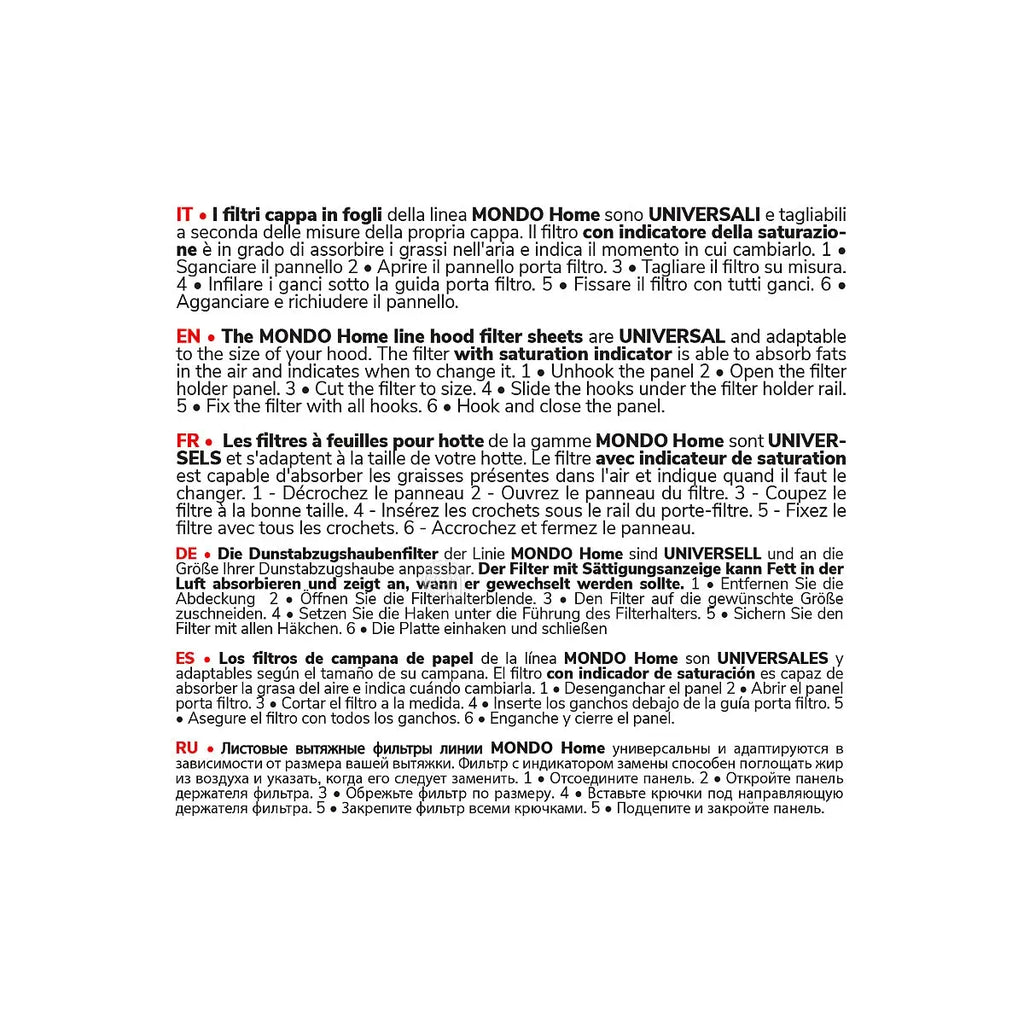 Este filtro de grasa original Mondo, con medidas de 45x87 cm, está diseñado para su uso en campanas extractoras de cocina. Su función principal es retener las partículas de grasa y suciedad del aire, protegiendo el sistema de extracción y mejorando la eficiencia del electrodoméstico.