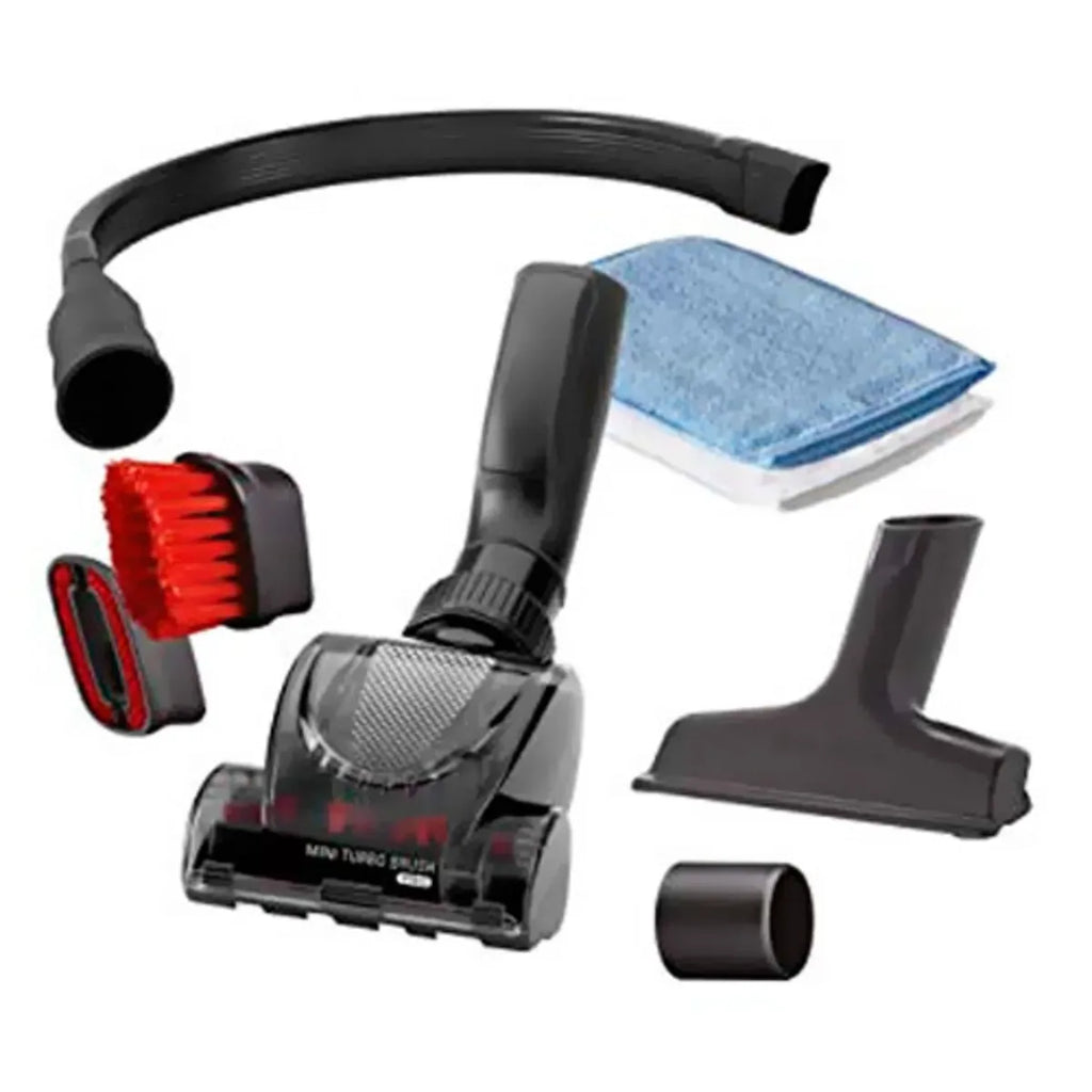 • Mini turbo brush with batter for deep cleaning of upholstery.