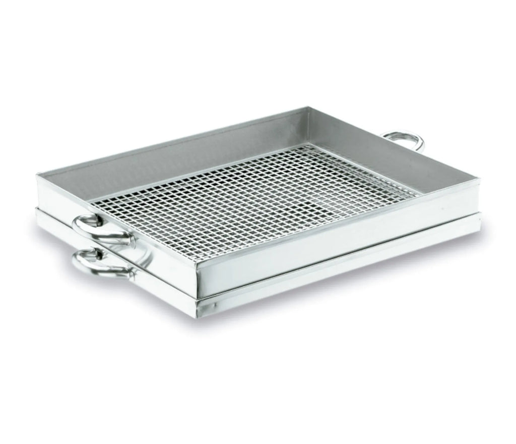 Metal mesh where food is deposited.