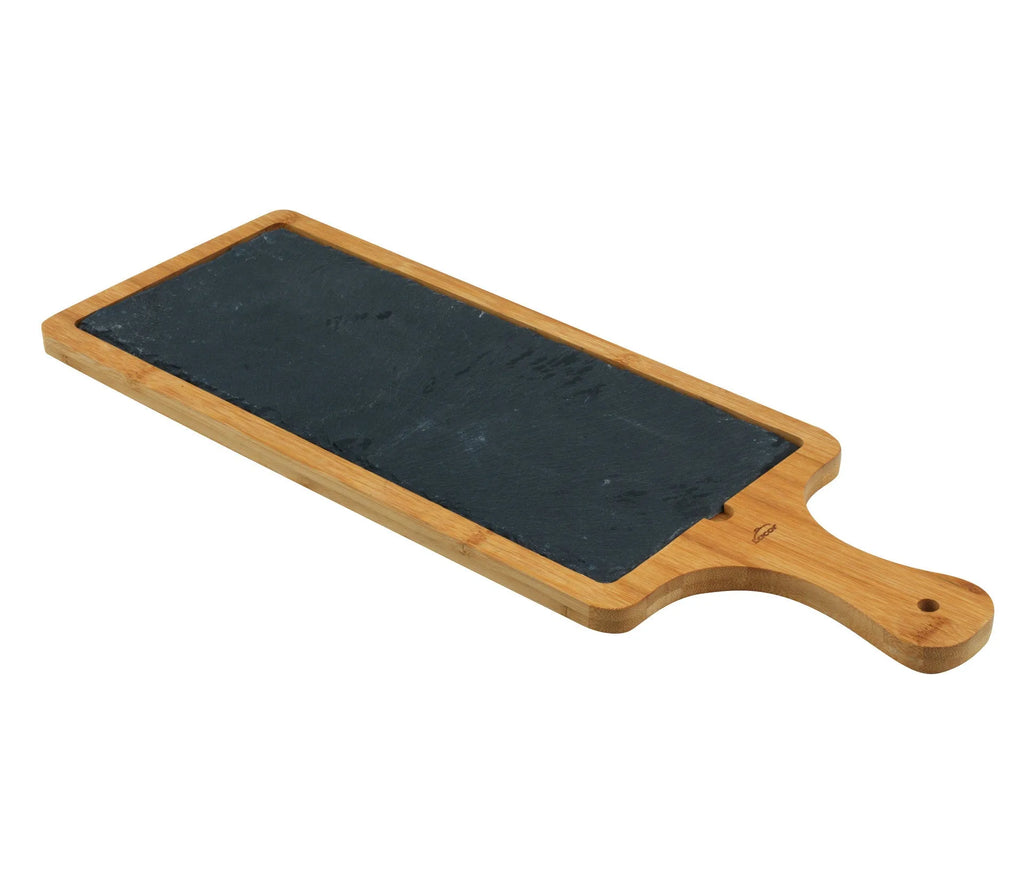Board with handle and a removable natural slate base, ideal for presenting and serving.