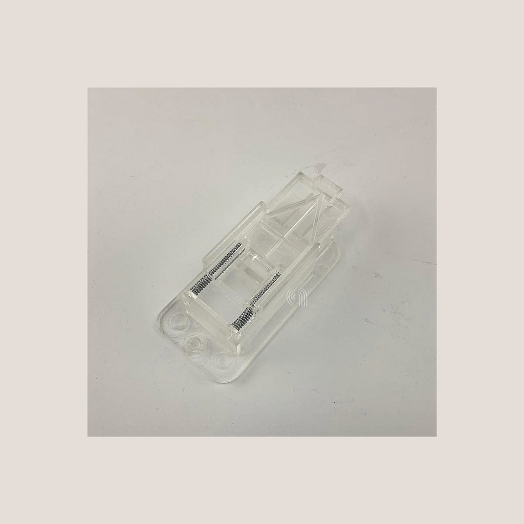 Esta manilla interior con resorte es un recambio original diseñado para campanas extractoras de la marca Elica. Es una pieza fundamental para el correcto funcionamiento del sistema de apertura y cierre de la campana.