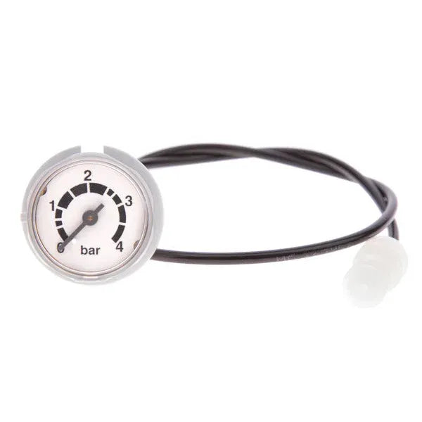 Este manómetro de presión es un componente esencial para calderas de las marcas Junkers y Bosch. Su función principal es medir y mostrar la presión del agua dentro del circuito de calefacción, permitiendo al usuario y al técnico controlar que la presión se mantenga dentro de los rangos seguros para un correcto funcionamiento del sistema.