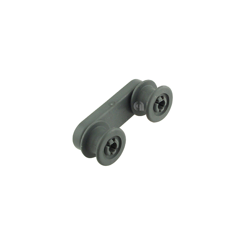 Soporte con ruedas izquierdo para cesta de lavavajillas, pieza original compatible con diversas marcas reconocidas. Este repuesto es fundamental para el correcto desplazamiento y estabilidad de la cesta inferior en lavavajillas, facilitando la carga y descarga de vajilla.