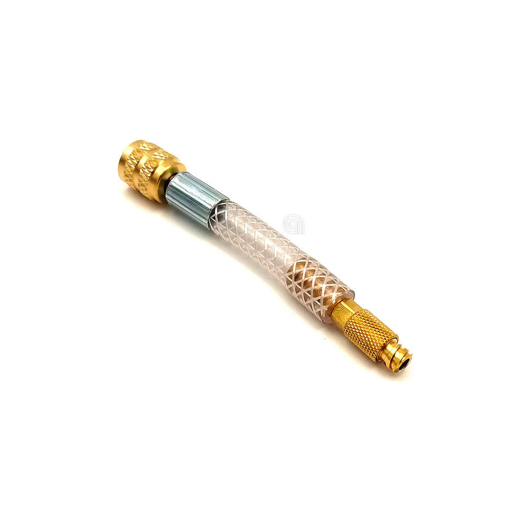 MONDO ofrece este Adaptador Jeringa Adaptable, diseñado para sistemas de aire acondicionado y refrigeración. Este adaptador es compatible con sistemas R410A y R32, facilitando la conexión de jeringas para la carga de refrigerante o la inyección de selladores. Ideal para trabajos de mantenimiento y reparación en equipos de climatización, incluyendo mini-splits y unidades HVAC. Su construcción robusta asegura una conexión segura y duradera.