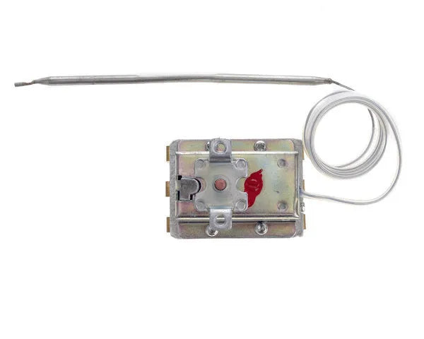 Termostato seguridad máquina de café. Modelo: EMBLEMA, ARIETE, LB4700, CLASSE10, S2 SPAZIO, BRAVA Código original: 20300015 07476906 10111015 108463 34200095 10065832 10067254 16508 1444509 5532532322 531193100 3231135058 CSCTER0070 95.01594 56302101 ASTORIA BEZZERA ELEKTRA FAEMA FUTURMAT GAGGIA IBERITAL ITALCREM VISACREM LA CIMBALI LA SAN MARCO LA SPAZIALE MAIRALI QUALITY RANCILIO SANREMO Temperatura de desconexión 169ºC 3 polos. Tipo de corriente: Trifásica. Ø Bulbo 4 mm. Largo bulbo 128 mm. Largo capilar 890 mm. Rearme manual.
