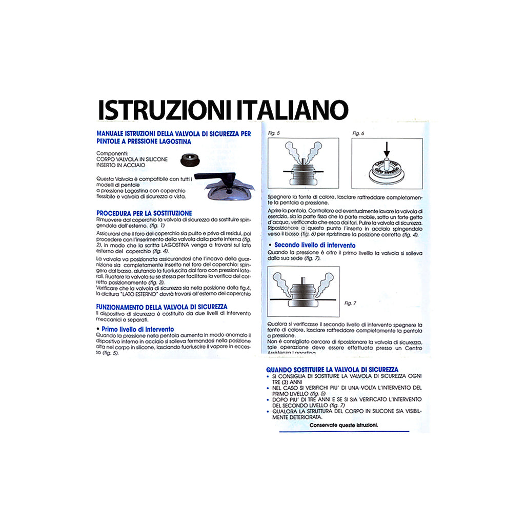 • Lagostina: válvula original código 090003110901 compatible con modelos como Lagostina Stellina, Lagostina Expert, y otras ollas de presión con sistema de seguridad similar.